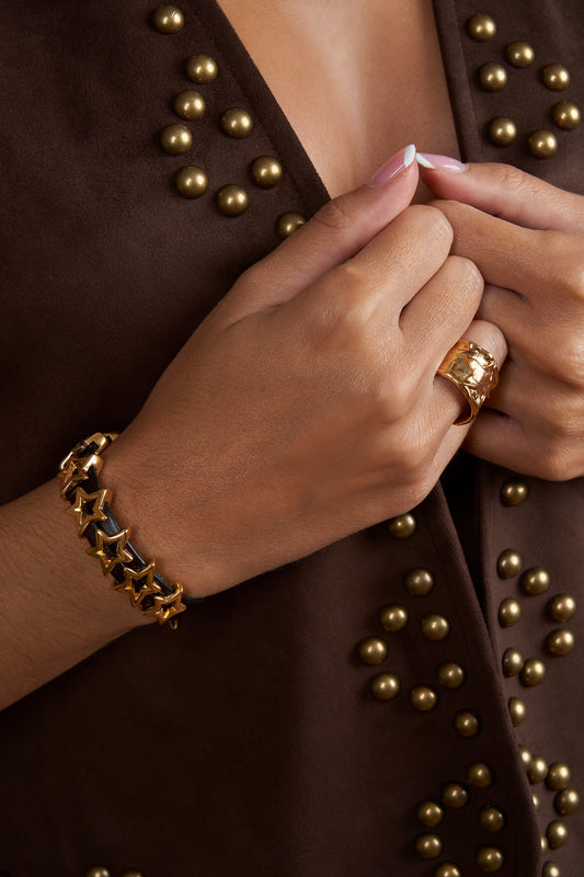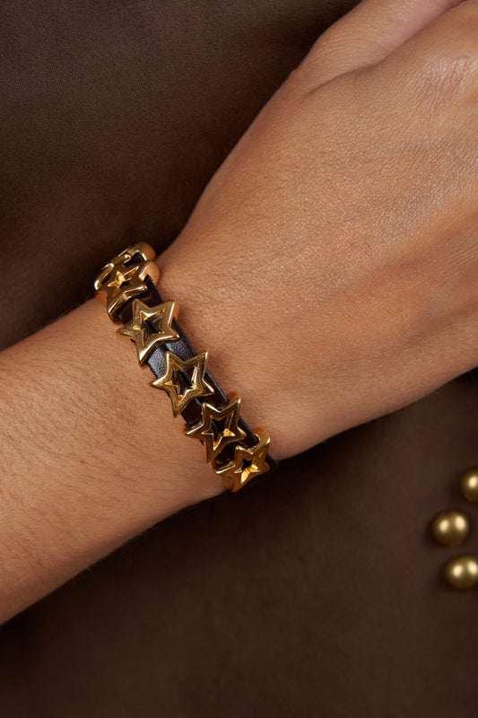 Pulsera Supernova Cuero Oro 3 Estrellas