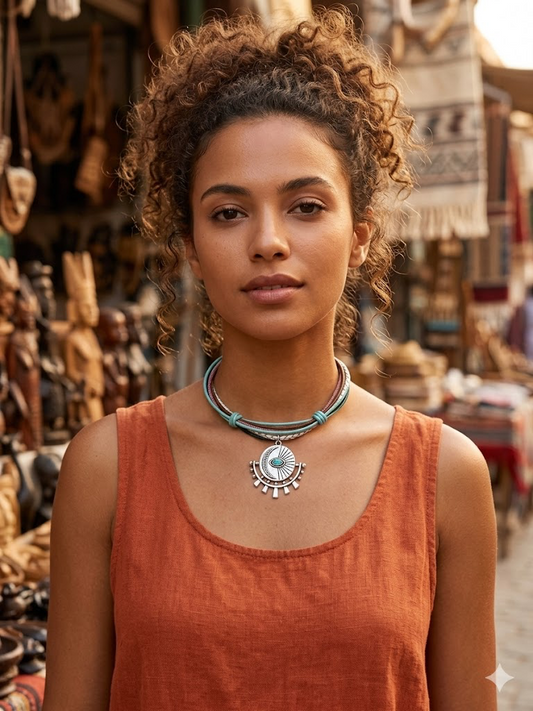 Gargantilla Bohemia de Amuletos - Ojo Turco y Luna Turquesa