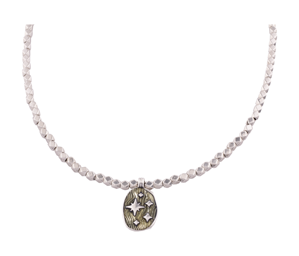 Gargantilla Acapulco, bañadas en plata. Antialérgico de alta calidad. Esmaltada con esmalte al fuego. Terminación de mosquetón con cadena extensible adaptable a cualquier tamaño. Ideal para el día a día.