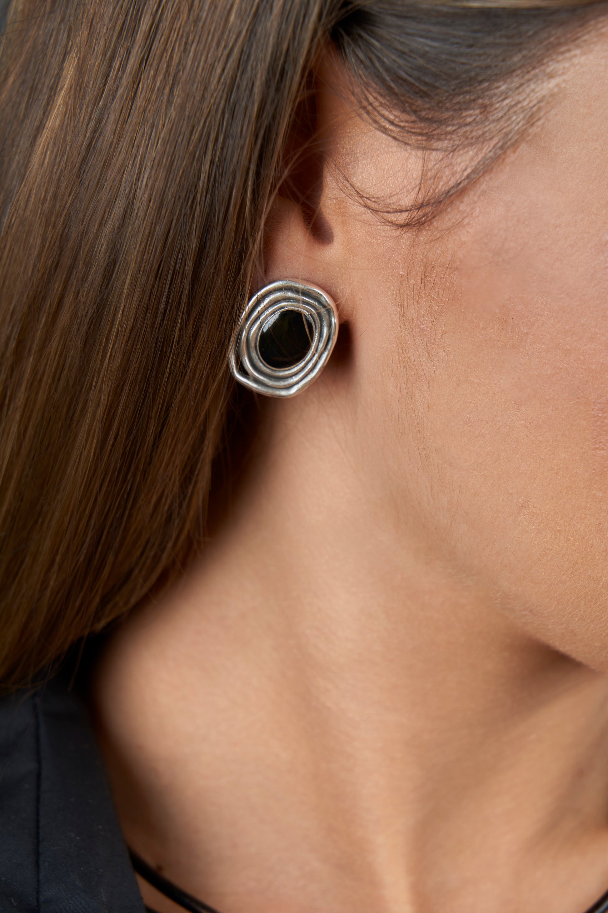 Pendiente Neón, bañado en plata con esmalte al fuego en negro y turquesa